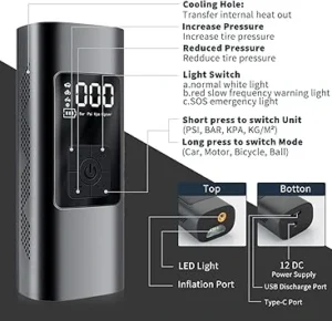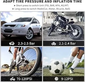 Its powerful air compression system of up to 10 Bar can inflate anything from vehicle tires to sports balls in just minutes, making it the perfect solution for unexpected flat tires.