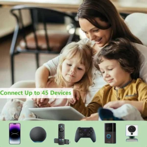 Compatible with 99% routers&Fast Ethernet Port:  This WiFi booster has been tested and is compatible with 99% of the routers on the market, and can be used with any standard router or gateway. Support extended to any device, such as iOS, Android devices, Samsung devices, Echo / Alexa devices, PC, PlayStation, smart plugs, etc. Experience the most stable wifi speed by using an Ethernet cable to your router, no more wifi speed dropping problem and enjoy seamless wifi speed anywhere in your home